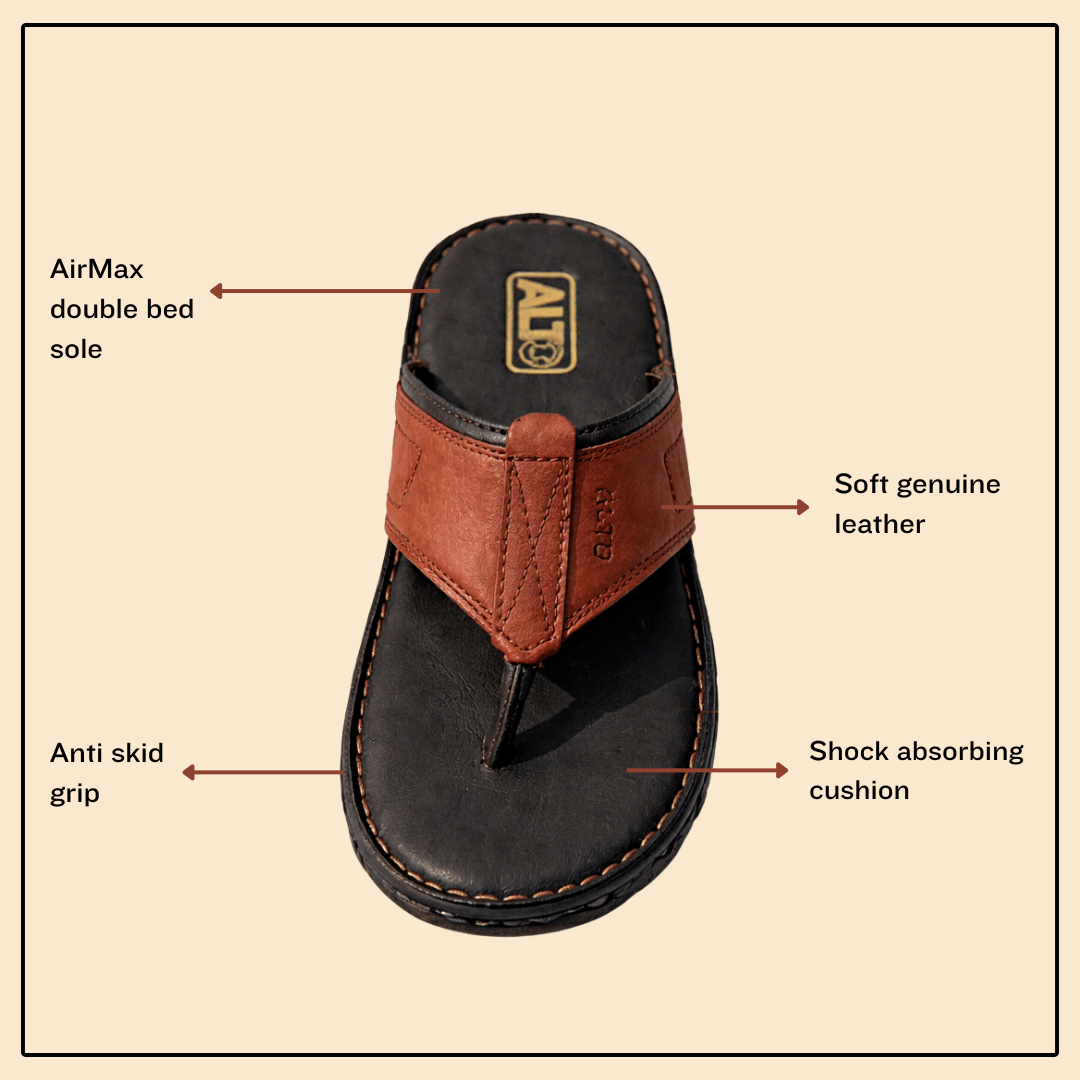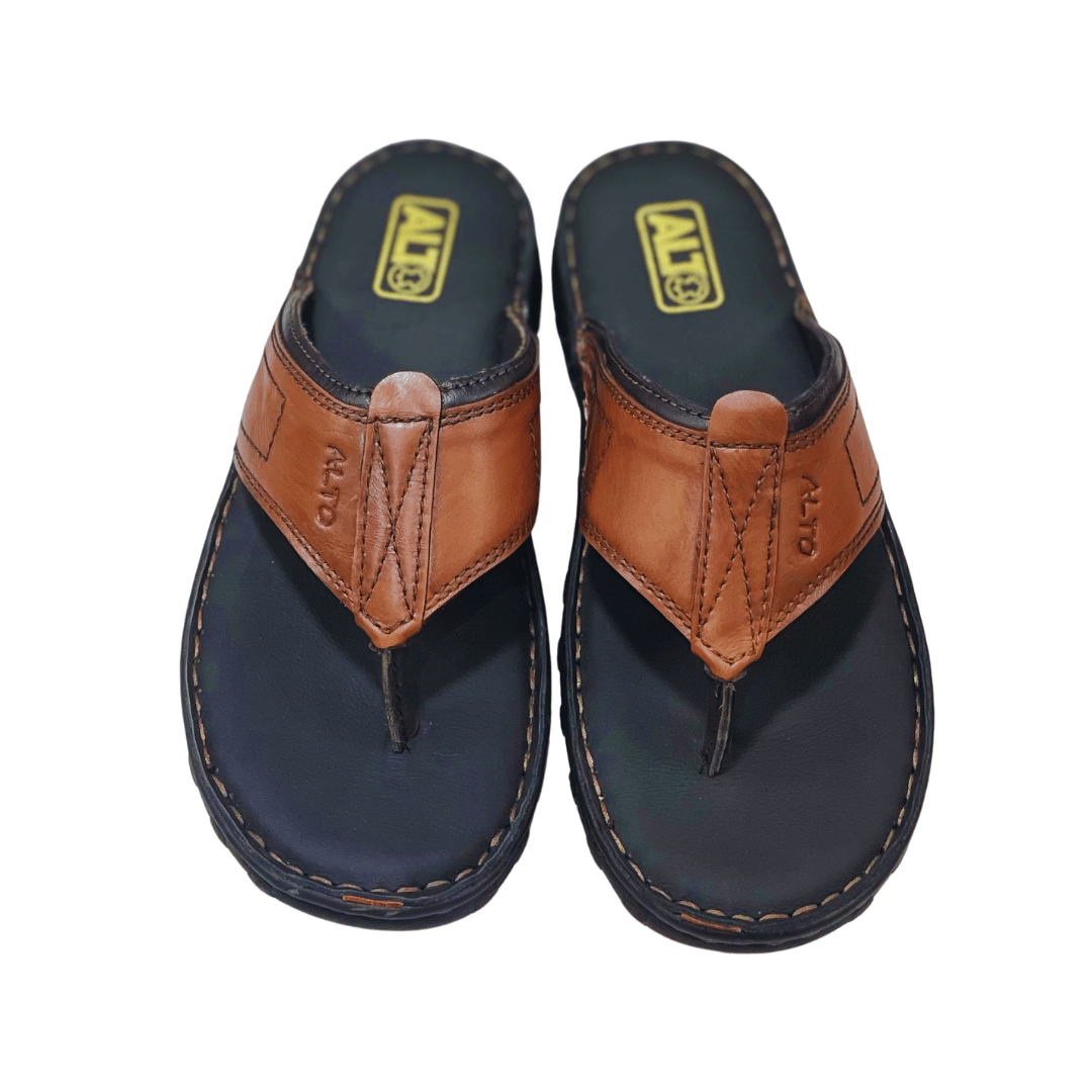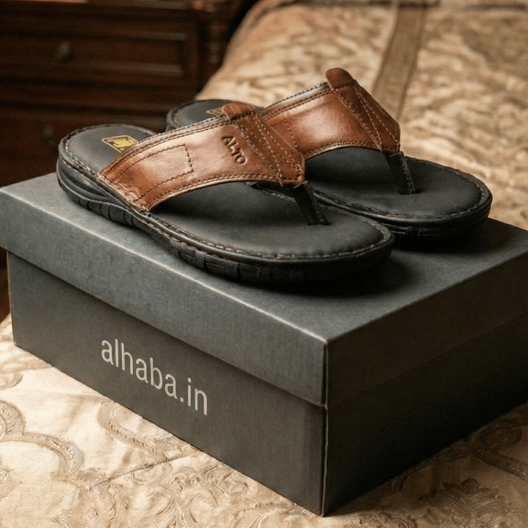 Experience premium comfort and timeless elegance with our handcrafted leather sandal, featuring a sleek black leather base paired with a rich brown leather strap. The artisan-stitched design delivering a sophisticated, bespoke feel.