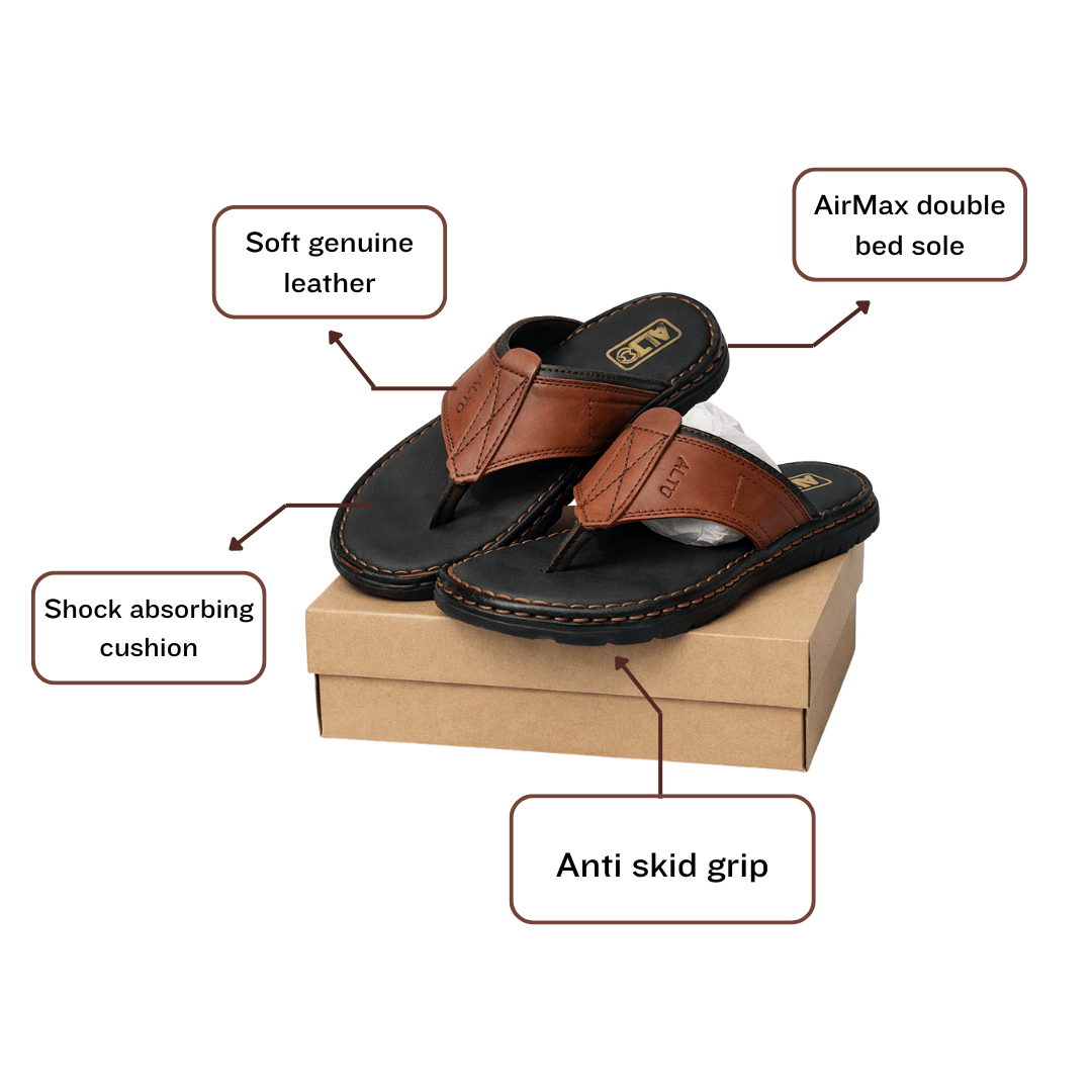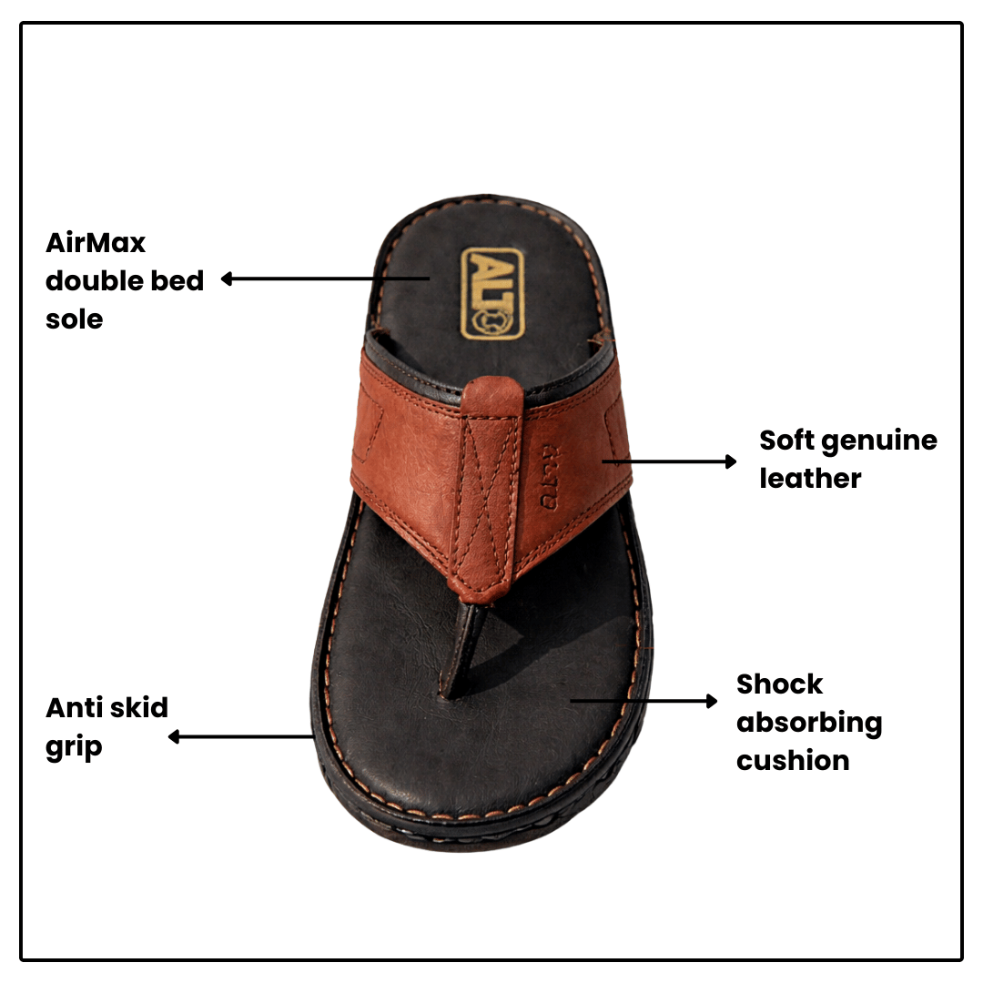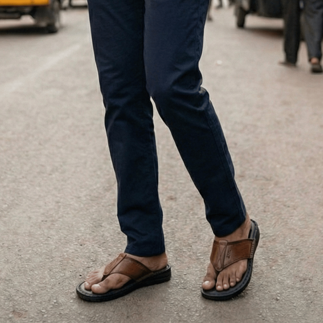 Experience premium comfort and timeless elegance with our handcrafted leather sandal, featuring a sleek black leather base paired with a rich brown leather strap. The artisan-stitched design delivering a sophisticated, bespoke feel.