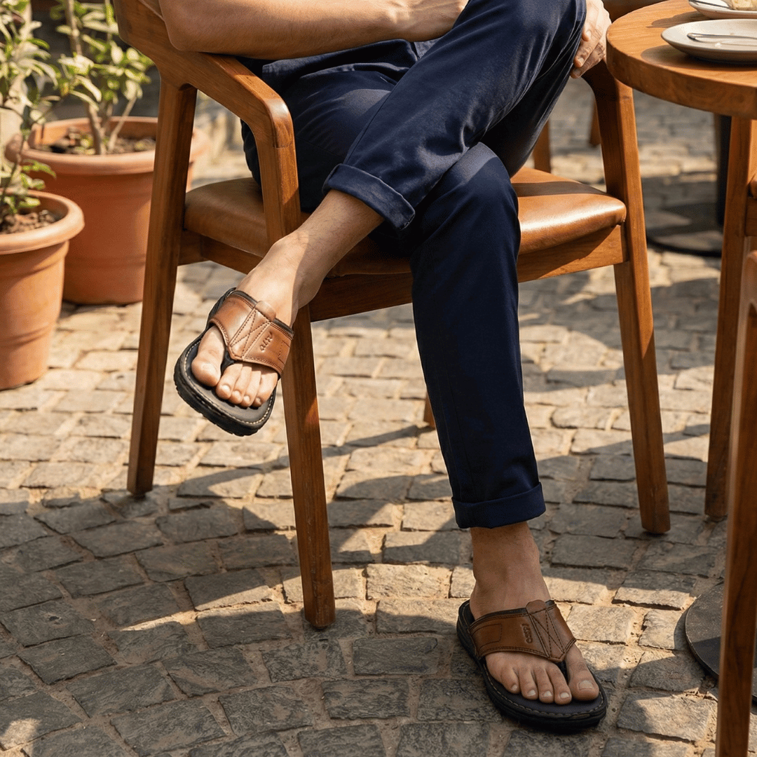 Perfect for upscale casual wear, the sandal offers superior durability, soft cushioning. and a stylish contrast that elevates any outfit.