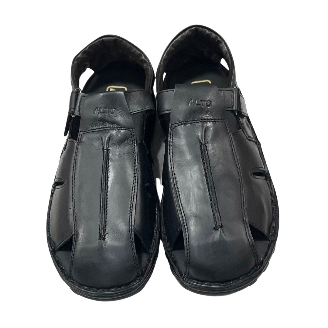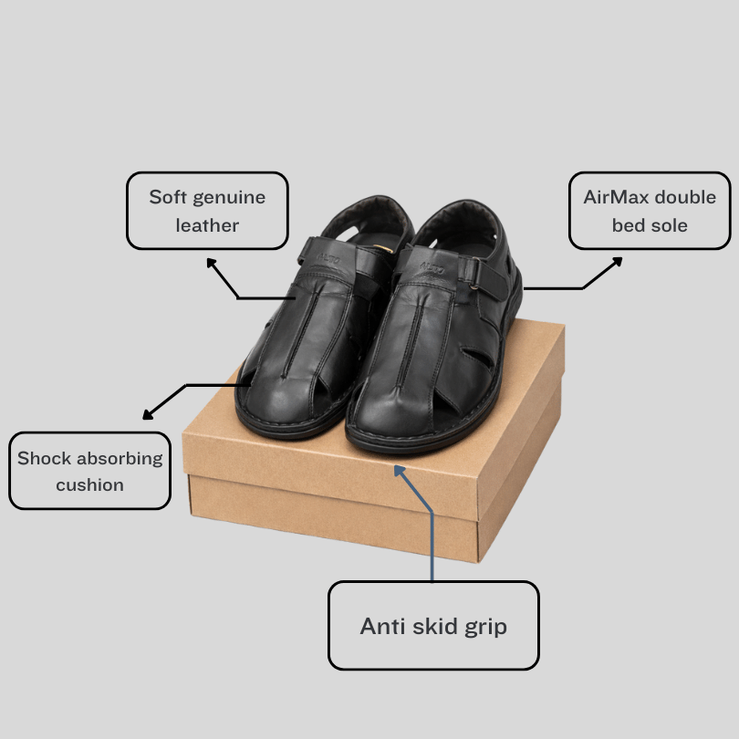 A premium, hand-stitched black leather slipper featuring sleek cut-out designs on the upper, a comfortable velvet-lined interior, and a soft, cushioned sole.